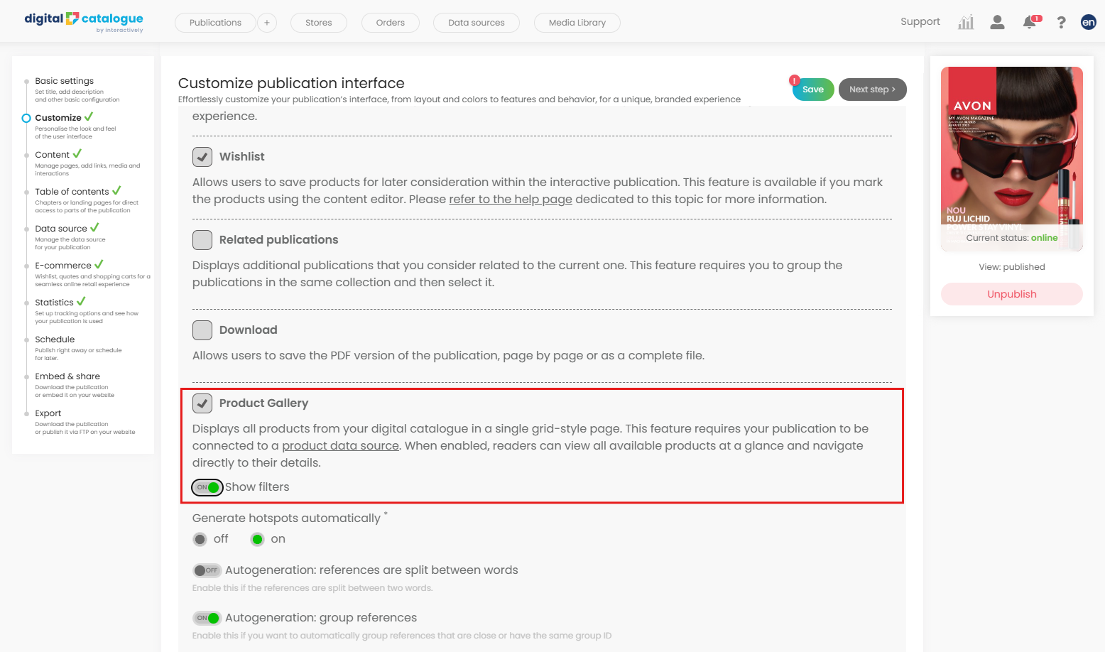 You are all set up! Check your digital catalogue in preview mode to explore your new Product Gallery feature and see how your products can now be browsed and filtered with ease.